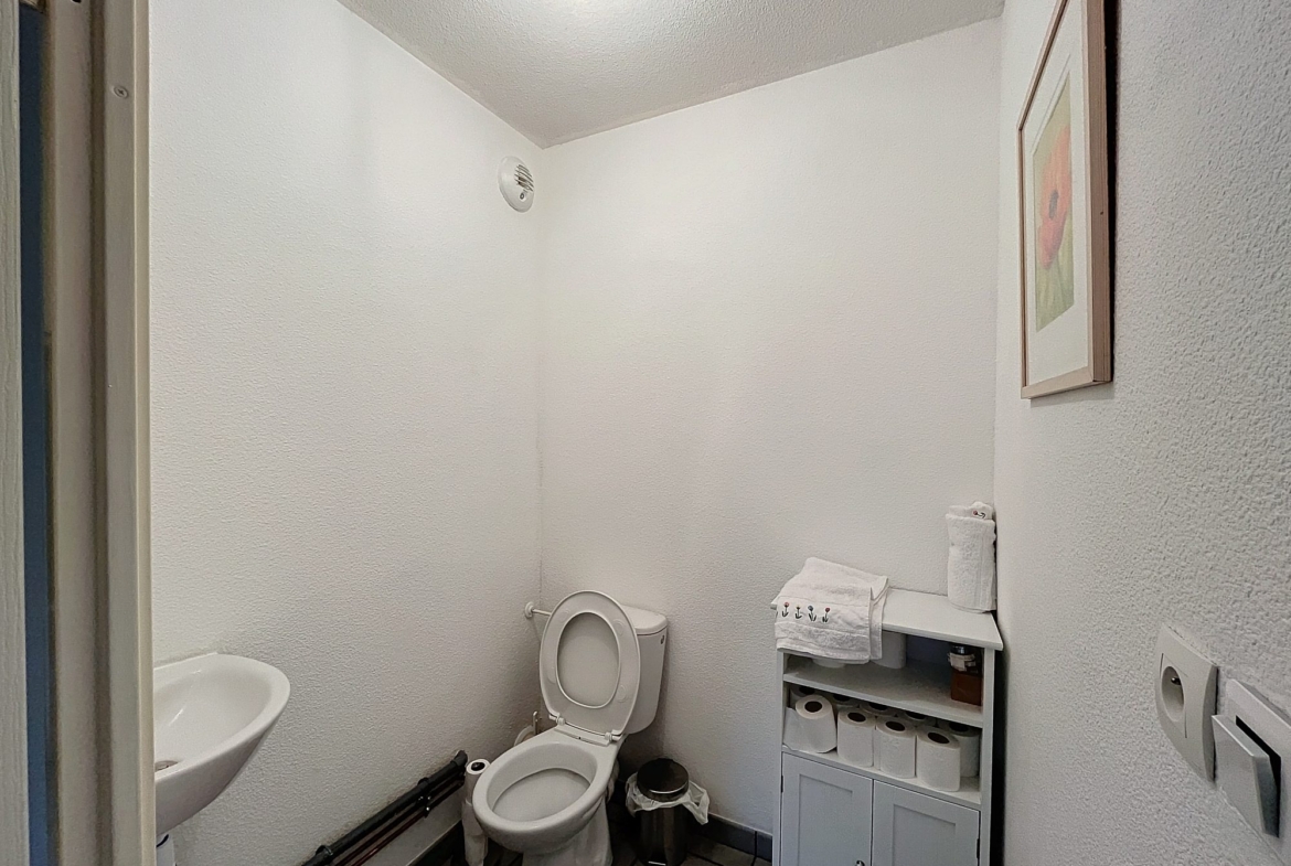Imaginez-vous dans ce spacieux salon baigné de lumière, où chaque détail a été pensé pour votre confort. Les deux chambres, chaleureuses et intimistes, vous promettent des nuits paisibles. La cuisine équipée, moderne et pratique, est un véritable atout pour les amateurs de gastronomie.