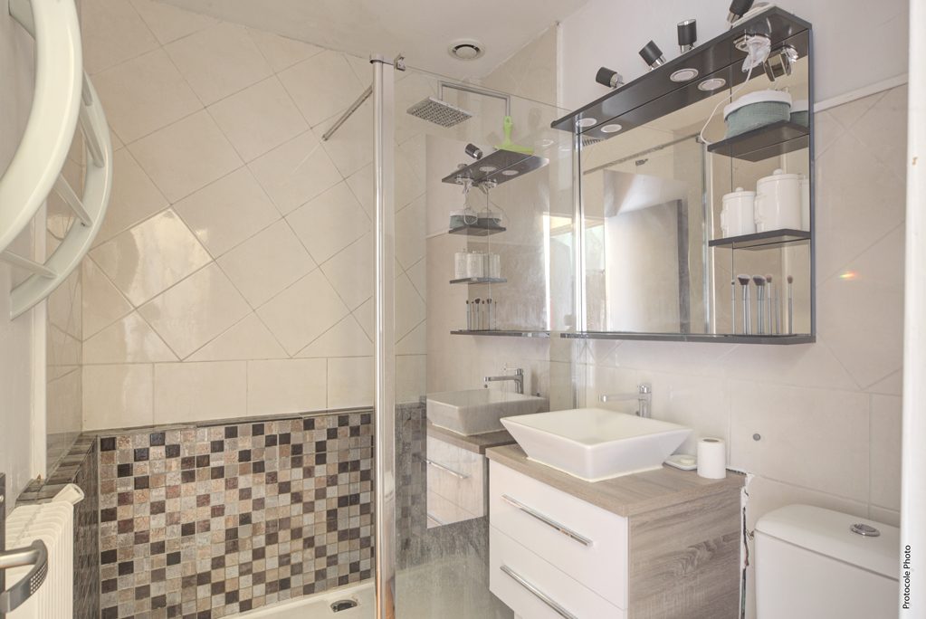 L’appartement se compose d’un vaste séjour et de son unique grand miroir ancien, d’une cuisine équipée, d’une chambre spacieuse et d’une salle de bain avec WC. Le tout dans un environnement calme et verdoyant, au cœur d’une résidence de 11 lots.