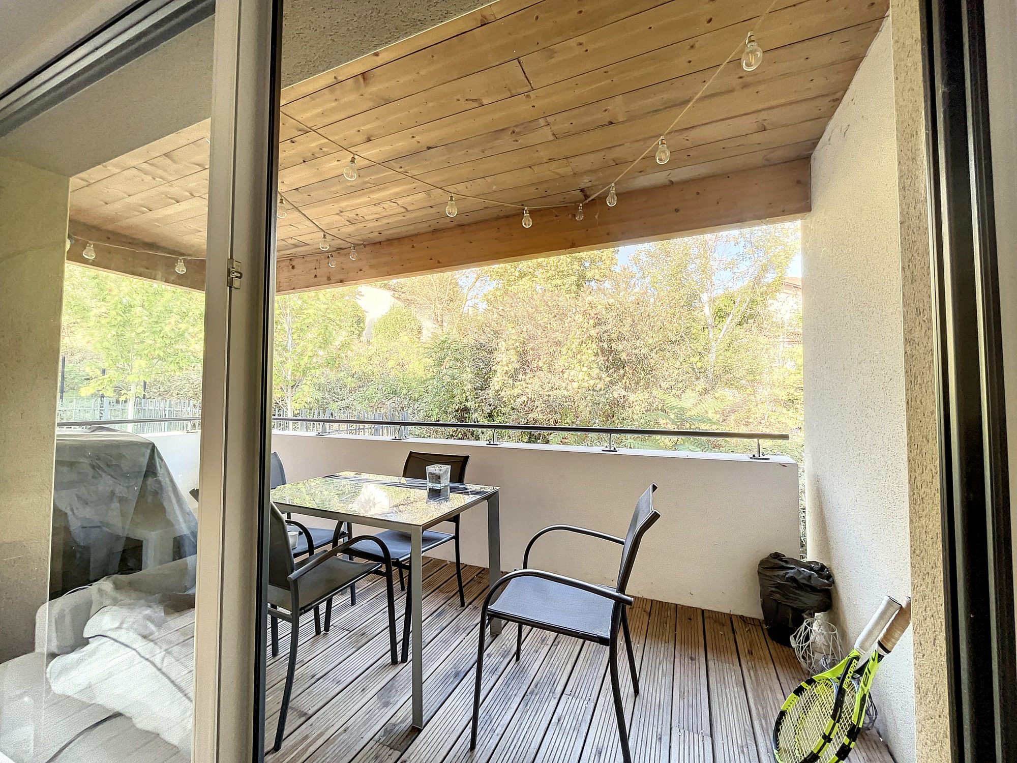 Il se compose d’une cuisine ouverte sur un séjour lumineux, d’une chambre, d’une salle de bain et d’un balcon couvert idéal pour profiter de l’extérieur en toute saison. Une place de parking couverte est également incluse.